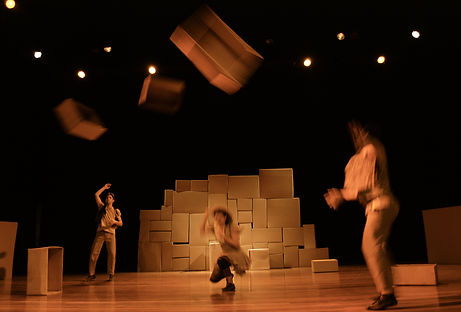 Enquanto pesquisa, o projeto buscou respeitar as narrativas e necessidades que nascem do corpo do ator, mantendo outro fator determinante do meu trabalho: guiar uma atuação inspirada na música. O material musical foi um dos eixos para o desenvolvimento dramatúrgico, já que as músicas presentes nas danças dramáticas brasileiras eram repensadas a partir de arranjos, no intuito de potencializar o processo de criação. Dessa maneira, a musicalidade norteava os criadores para as tensões que cada cena poderia representar, além das outras inúmeras inspirações que rondavam o ambiente e nos indicavam ricos encontros, como por exemplo, a obra “La Strada” de Fellini, figuras sociais como os camelôs, mendigos e moradores de rua da cidade de São Paulo.